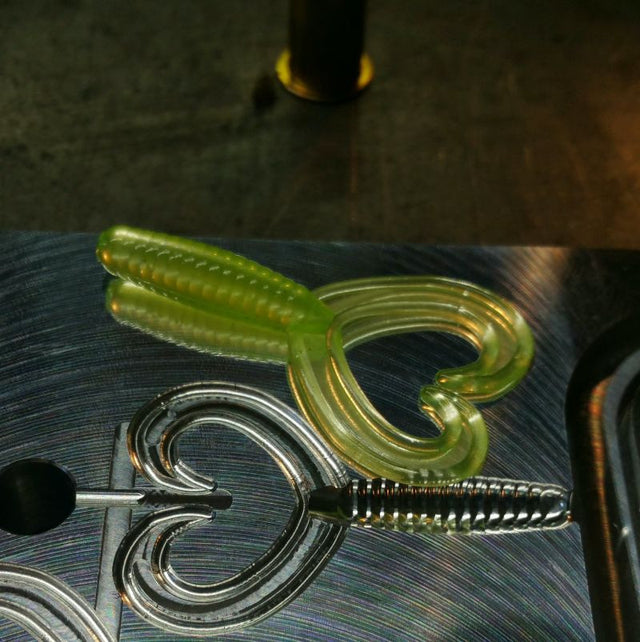 The 20-Cavity 2" Twin Tail Grub has a 1.625" bait size and .25" body diameter. Its twin tail design creates a fluttering motion that entices panfish. With a high cavity count, bait makers can quickly produce multiple baits, giving them more time to fish.
