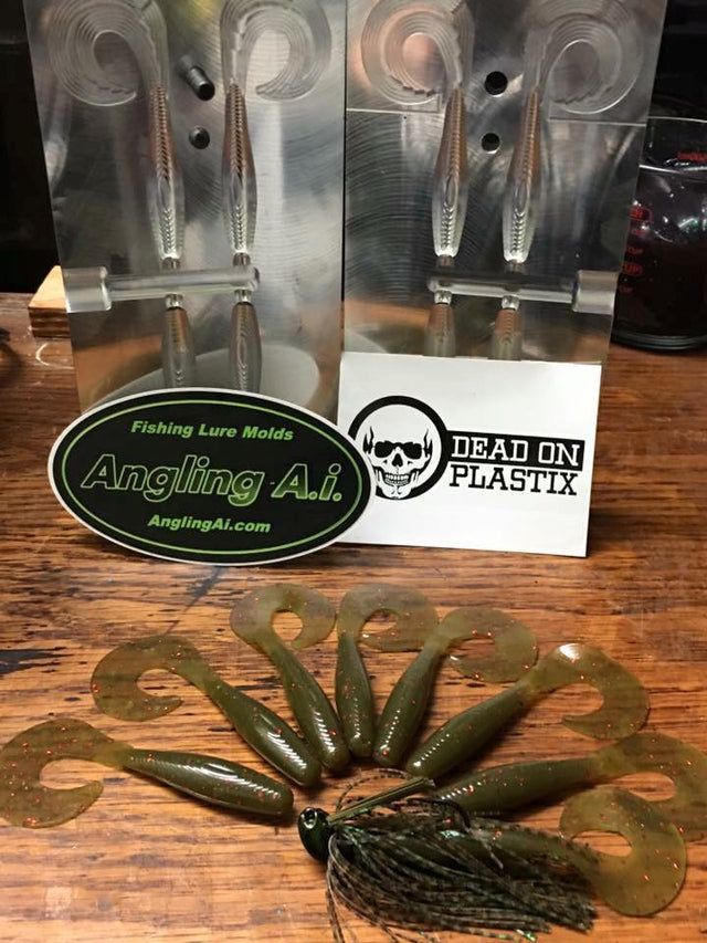 5" Single Tail Grub Bait Mold, 2 piece, 4 cavity injection mold.