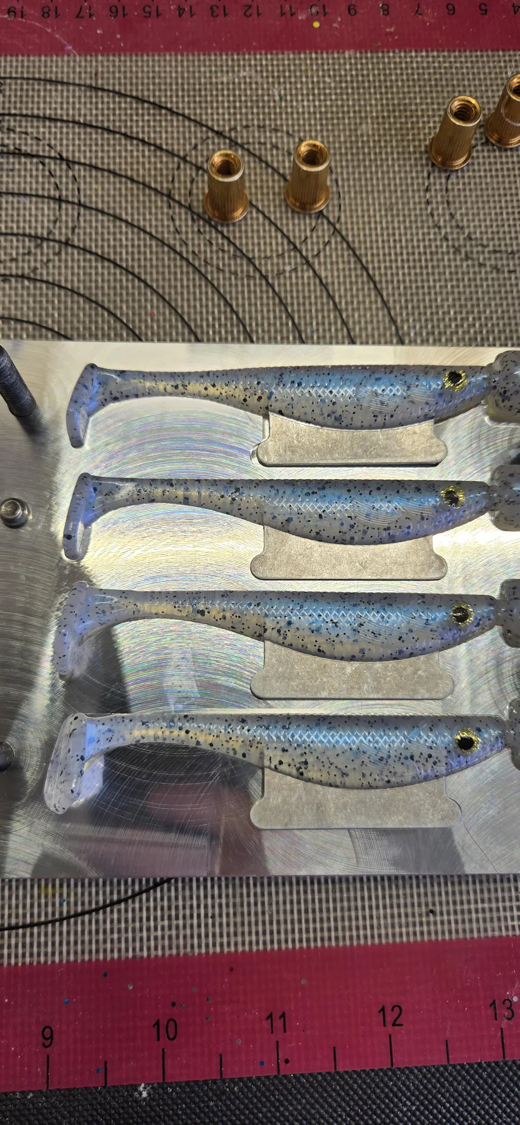 4" DR Swim Bait Mold- 4 cavity-Single Top Ports allow for making Top and Bottom Laminates.