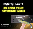 Ai G3 Open Pour Swimbait Mold- The Ai G3 is 3-inches in length and allows bait makers to open their creative minds. The G3 mold sides are flatter to allow better control when pouring intricate designs to take advantage of the scale pattern. The G3 also features a jawline, gill plates, and eyebrows to enhance the character at the head. 4mm eyes will help add a lifelike look and the mold features two unique fins. The tail design is thinner giving the bait a tighter tail kick swimming action. A special hook slot design allows for 3 positions to be used. Two positions produce a hook slot for a thinner or thicker top body portion to be used for swimbait hook rigging. Flipping the hook slot over creates a hook slot delete version for those wishing to use a jig head rigging with the swimbait.