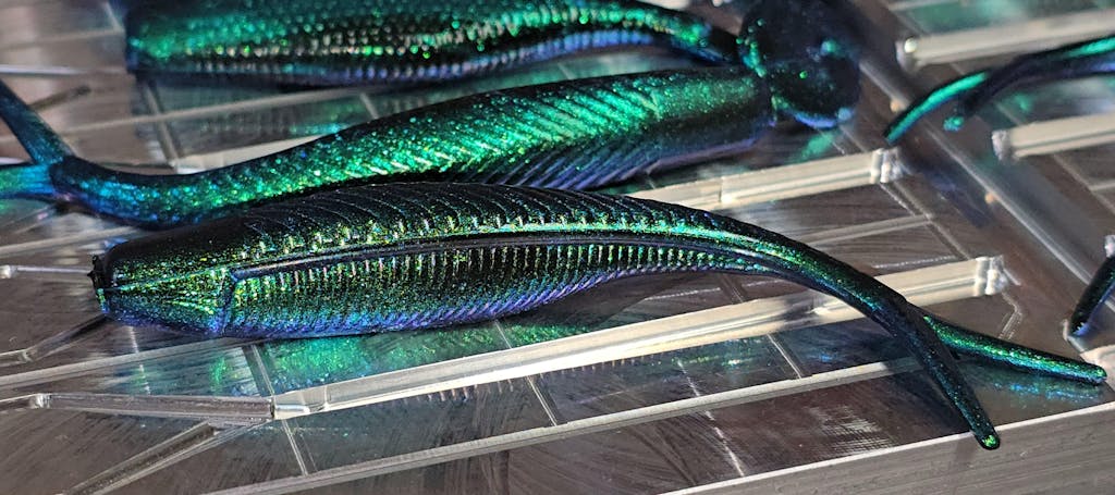 4" Tracer Shad-(4- Cavity)-The Tracer Shad is designed for forward facing sonar fishermen who prefer to use a Hover Rig or Strolling technique. The versatility of the bait will allow for other techniques to be applied effectively. With a width of .5" across the top, and height of .6" the Tracer Shad is ideal for popular rigging variations.
