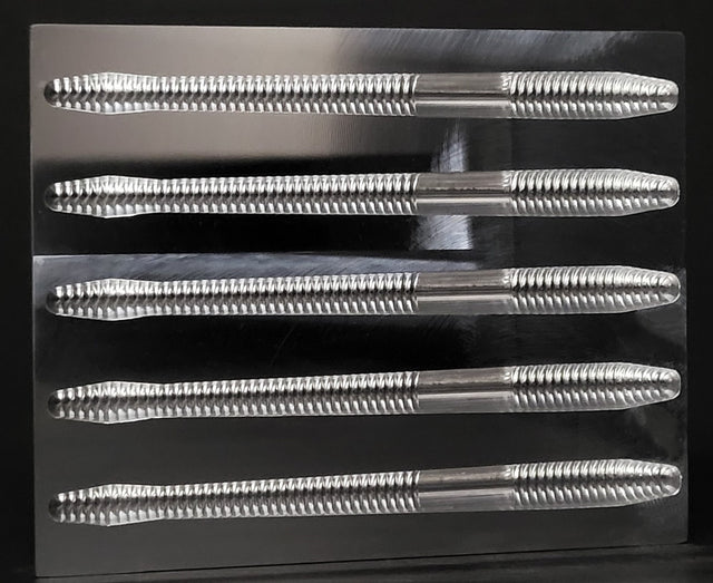 4.75" MOJO WORM Open Pour Mold-- Little brother to the Original MOJO WORM is a great addition to any anglers array of baits. Bait is 4.75" long, .27" deep, and .34" at the head. Fish this worm as a drop shot, shakey head, or a split shot worm and draw that needed attention from predator fish. Produce incredible worms with this mold using a variety of open pour techniques. Imagination truely is the limit with this 5 cavity mold.
