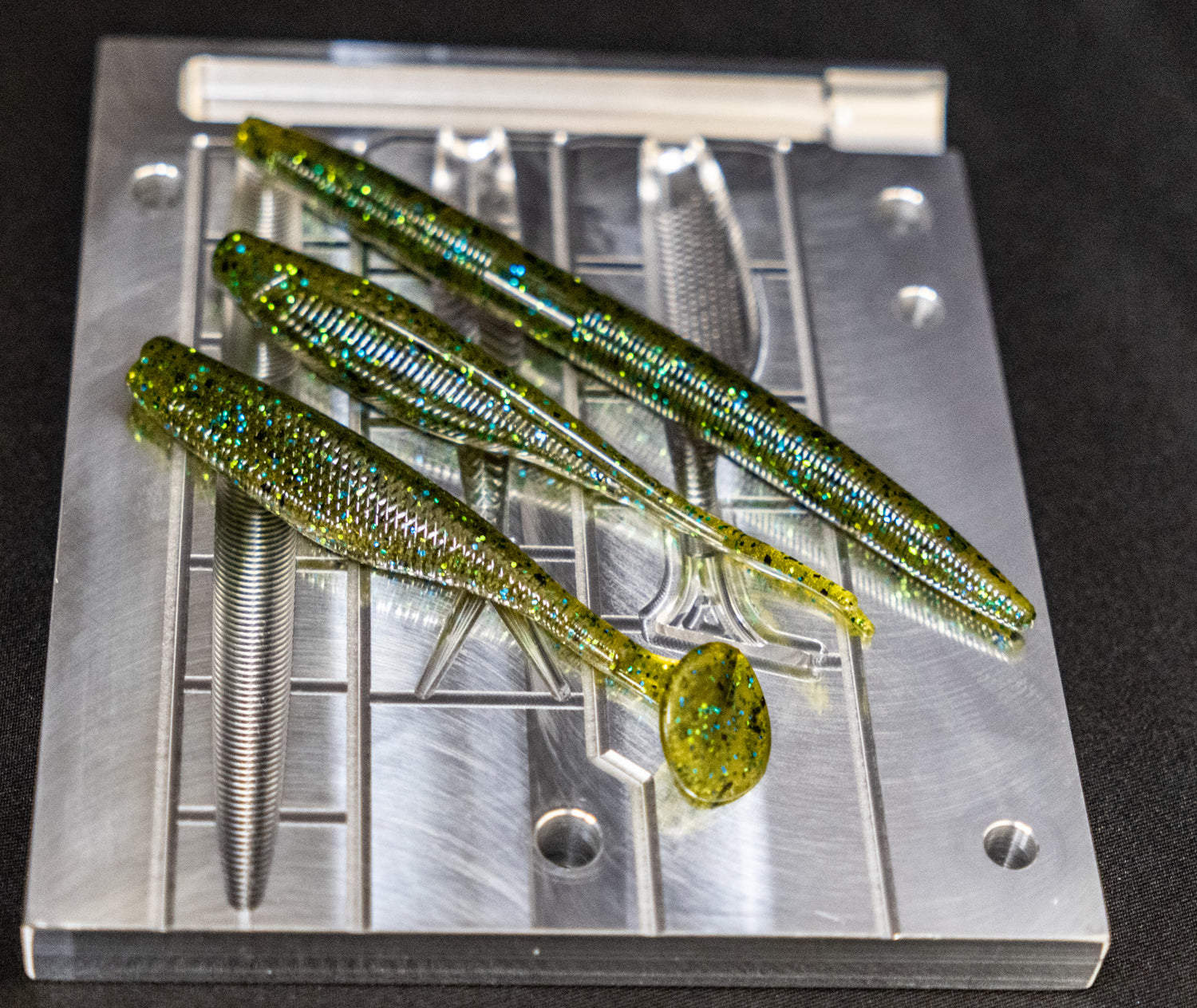 - (1) Angling Ai CNC Aluminum Injection Mold- (3) Cavities- (1) 3.8" Rip Rap Swimbait, (1) 4" Tracer Shad, (1) 5" Stick Bait